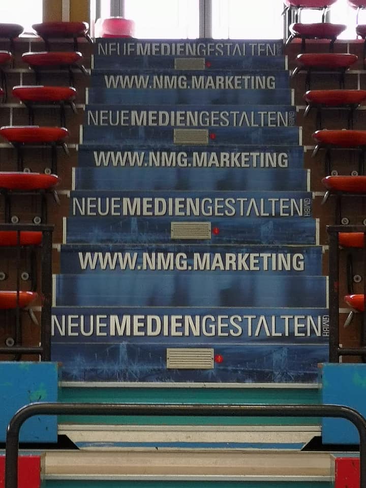 Werbung auf den Treppenabsätzen